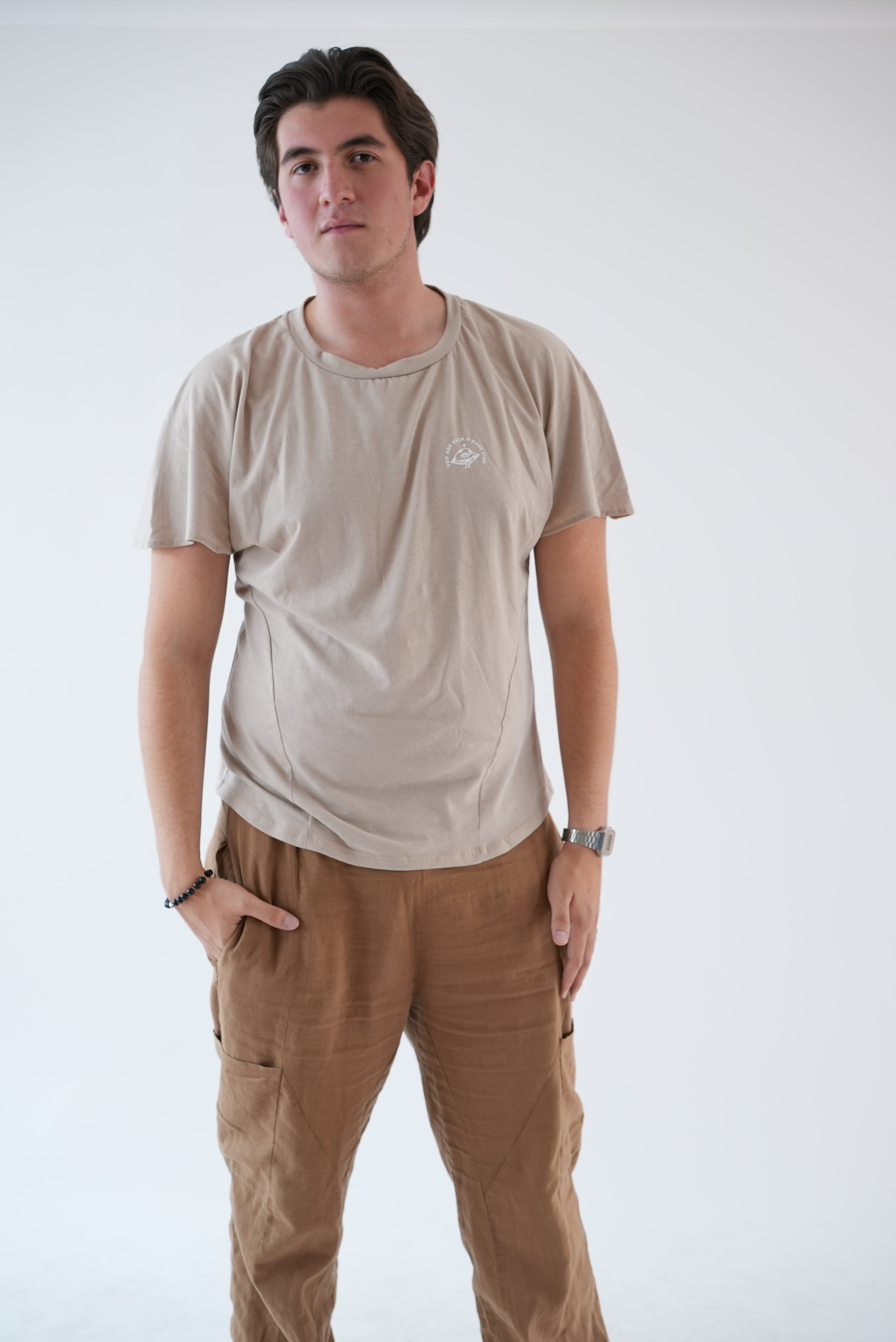 T-shirt named after the T shape of its body and sleeves, is light and has breathable fabric, super soft, fashion friendly and up with the trends, but not clingy and not too loose, it hugs your body to take care of you.